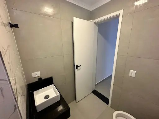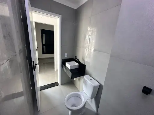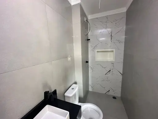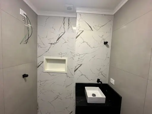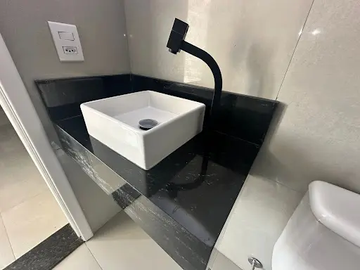 Banheiro com Porcelanato Pia Granito Preto