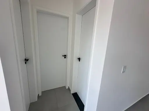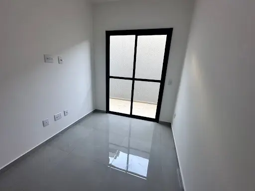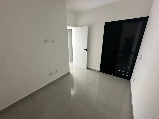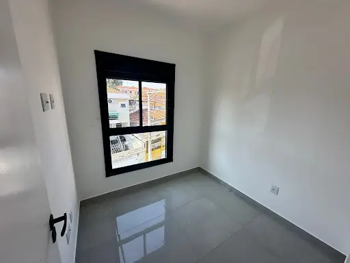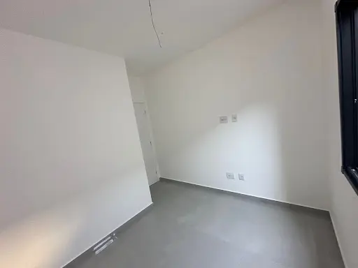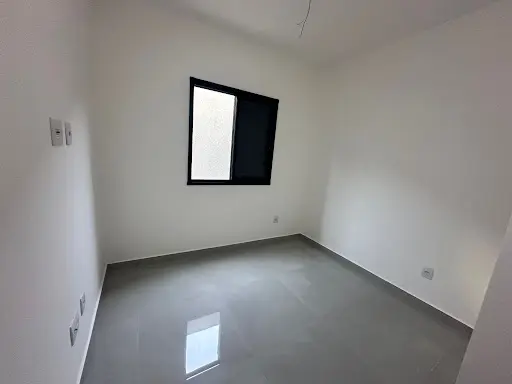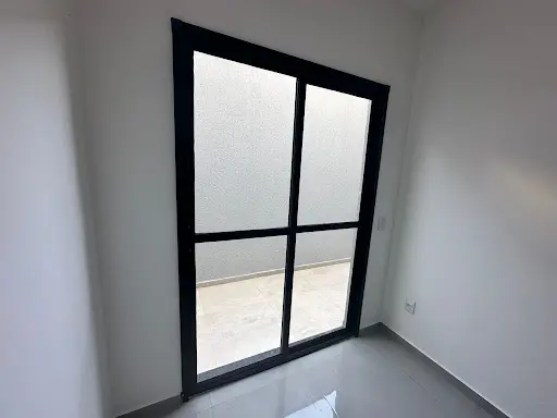1 dormitório, com piso Porcelanato e janela de alumínio galvanizado preto