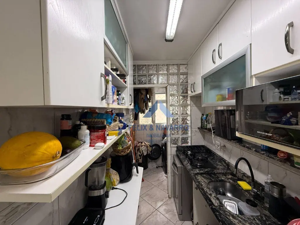 São 47 m², sendo 2 dormitórios (com armários), sala 2 ambientes, sacada, cozinha (com armários), lavanderia, banheiro social e 1 vaga de garagem. O Piso é porcelanato, o teto com sanca de gesso.