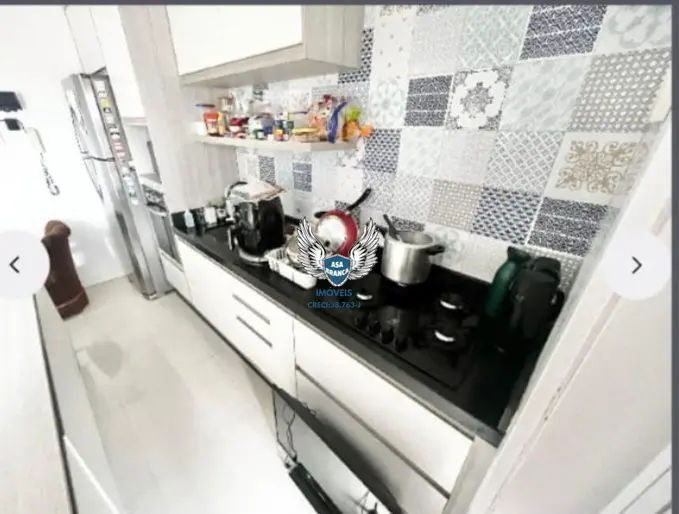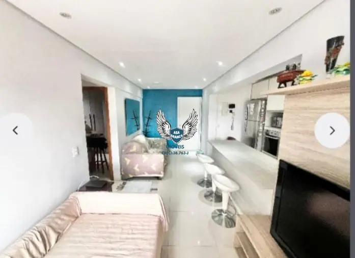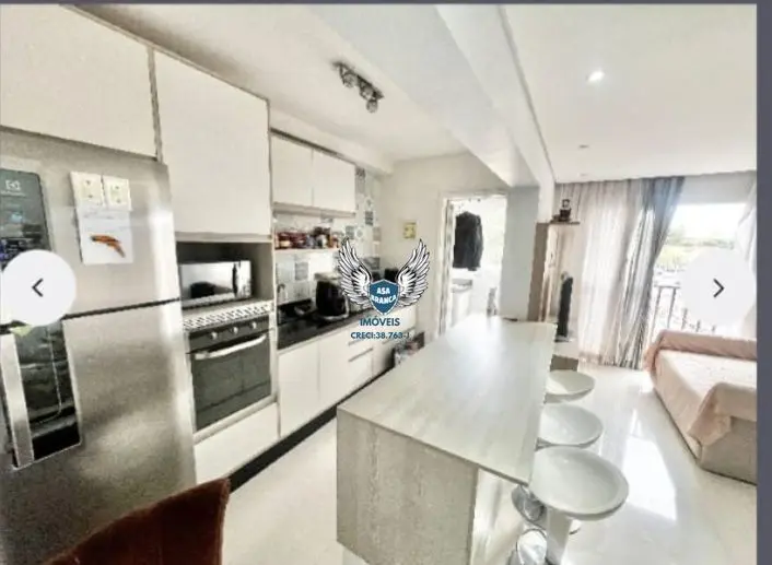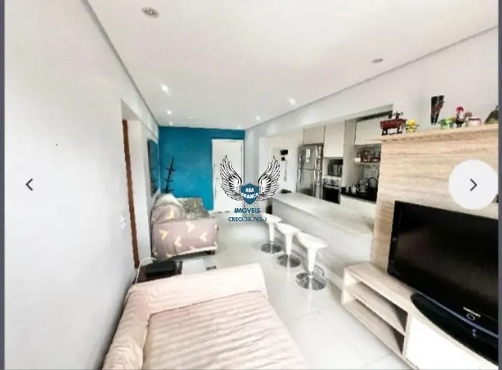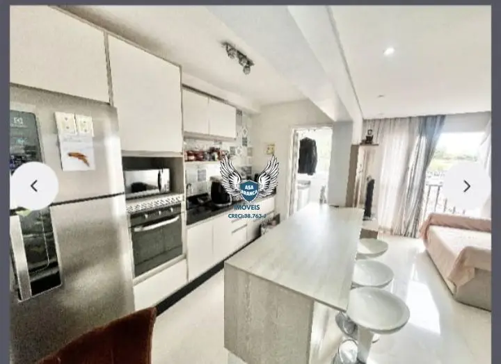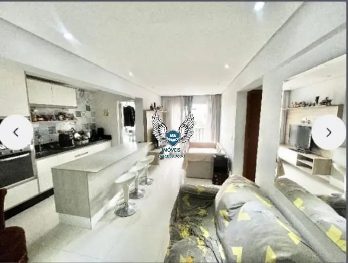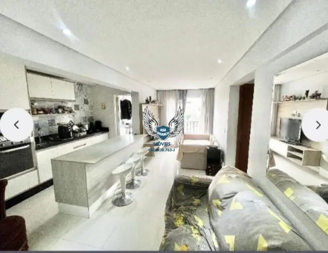 Apartamento com móveis planejados na cozinha, sala e quarto.