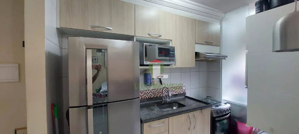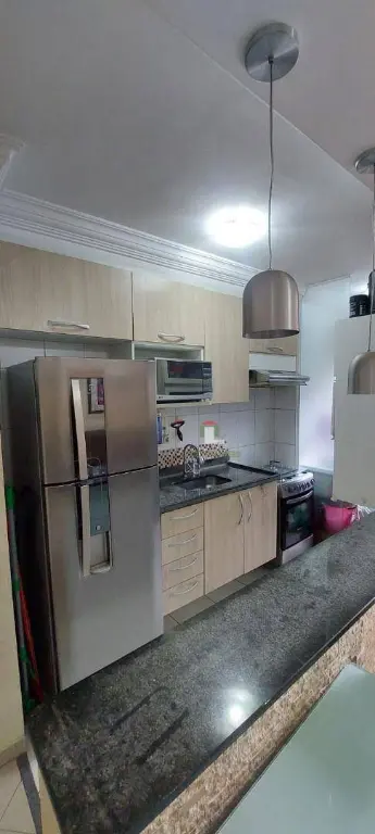 Condomínio com piscina, academia, churrasqueira, salão de festas, brinquedoteca, salão de jogos, quadra, mini mercado, padaria e bosque com área verde.
