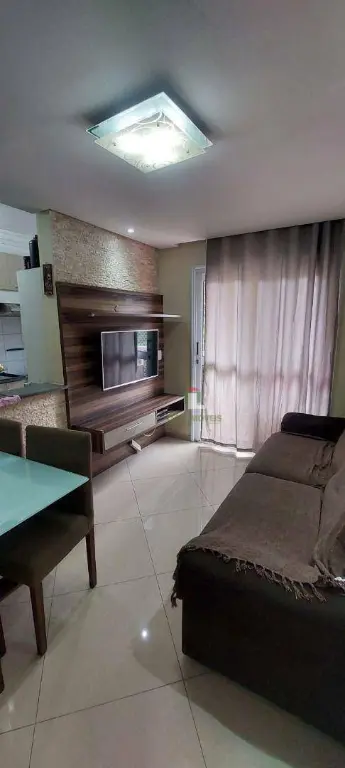 Apartamento de 50m² bem distribuídos com móveis planejados, sendo 2 quartos, banheiro, sala, cozinha americana com lavanderia, sacada e uma vaga de garagem.