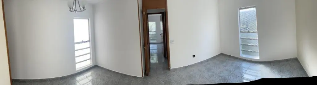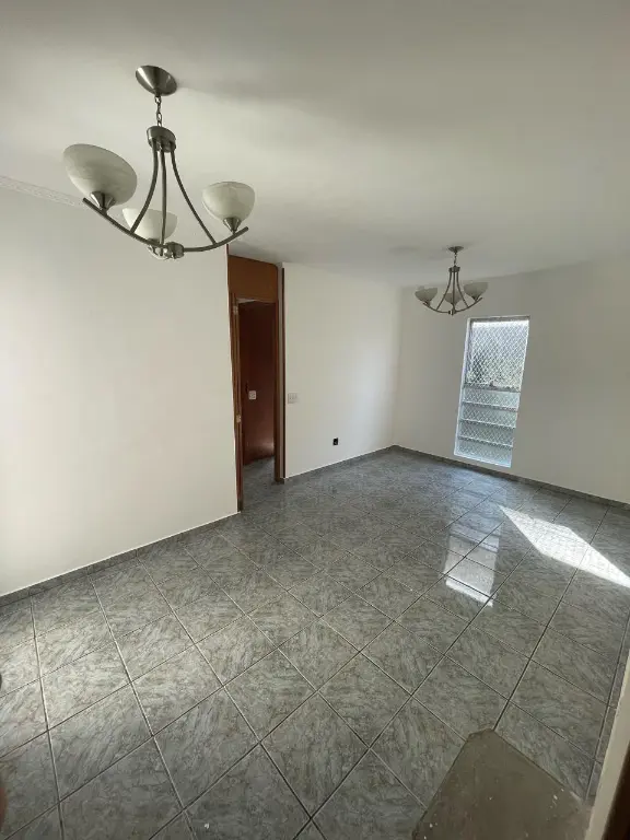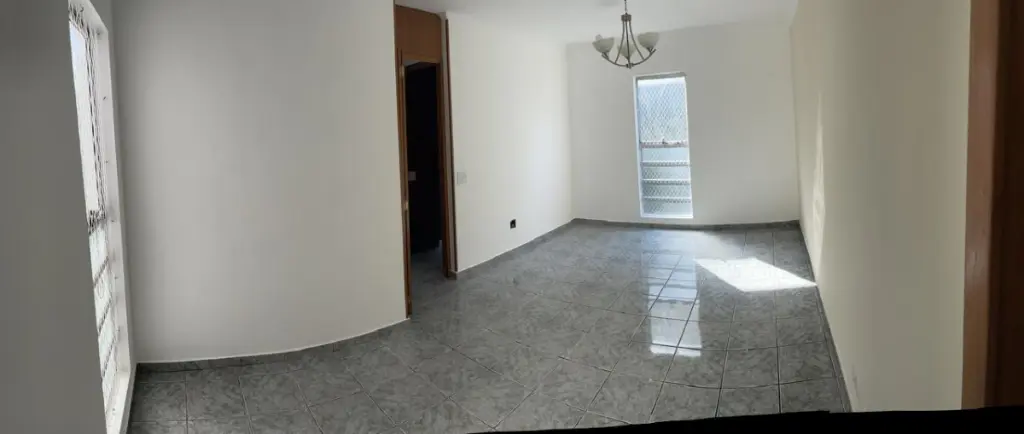 Sala para dois ambientes com janela vertical grande, proporcionando boa luminosidade