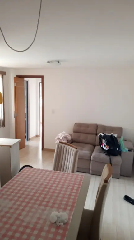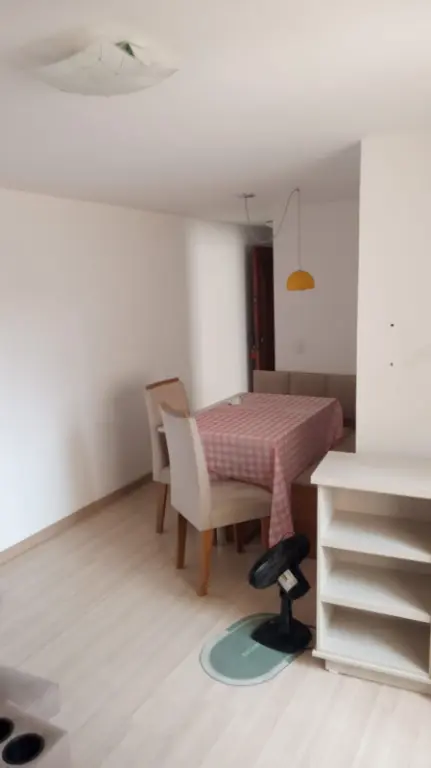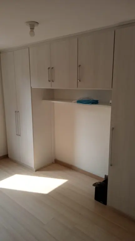 Apto com 2 dormitórios 1 com armário embutido sala dois ambientes, piso carpete de madeira