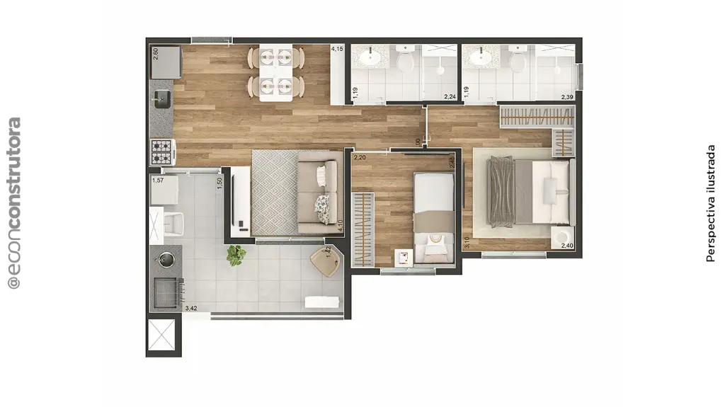 APTOS DE 02 DORS TODOS COM VARANDA COM OPÇÃO DE SUITE E VAGA METRAGENS DE 37,18 A 49,60M2 - LAZER COMPLETISSIMO