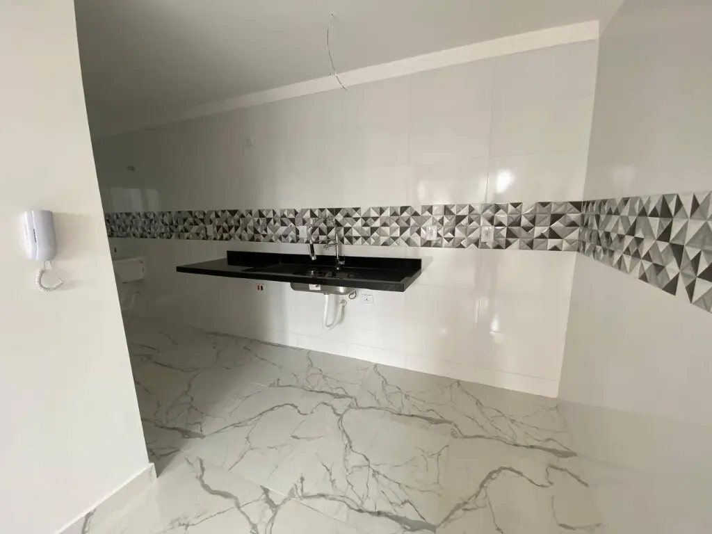 Apartamento novo para venda com 45m², 2 dormitórios, sala, cozinha, banheiro, área de serviço, elevador no prédio, sem vaga de garagem. Excelente acabamento.