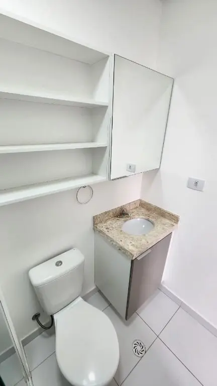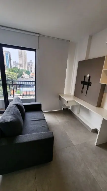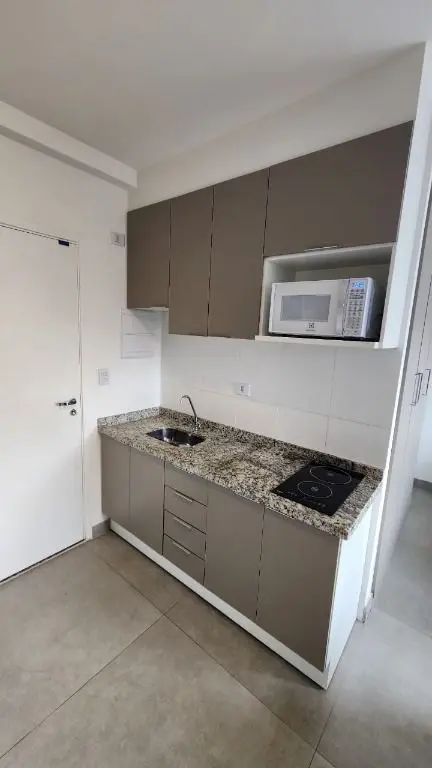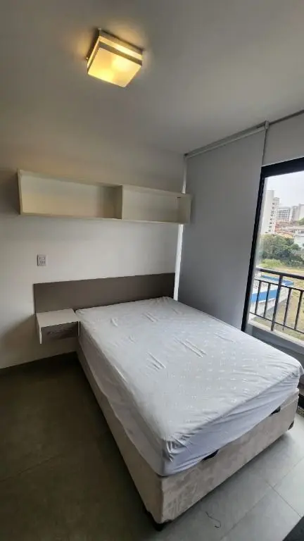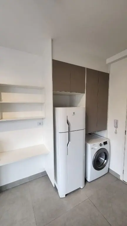 Stúdio mobiliado e equipado, geladeira, fogão, micro- ondas, máquina de lavar e secar, ar condicionado, cama box com bau, sofá, chuveiro, box de vidro.