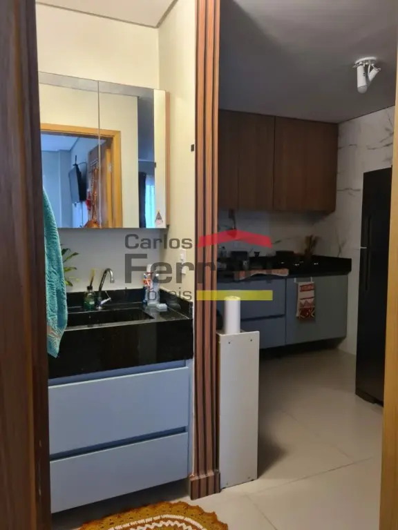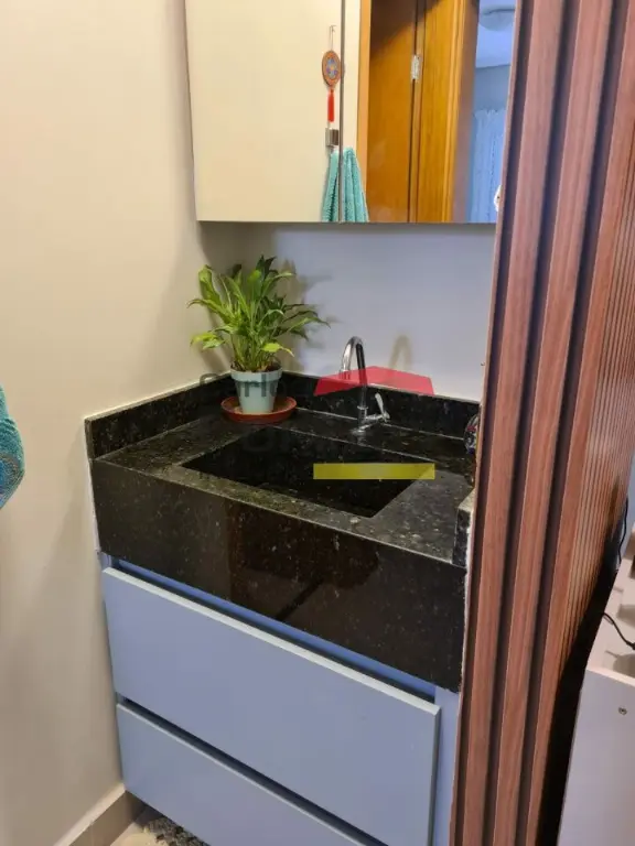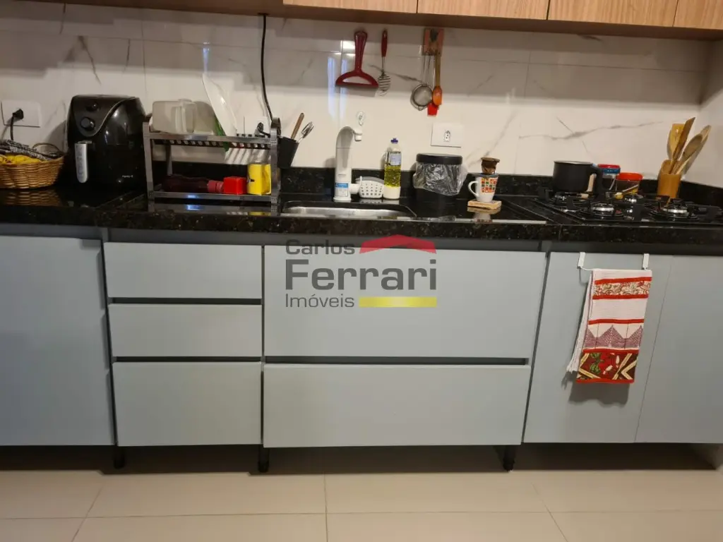 Apartamento com armários embutidos na cozinha e lavabo, quintal com cobertura de vidro, banheiro com box, porcelanato e rede de proteção. Condomínio com elevador e churrasqueira,