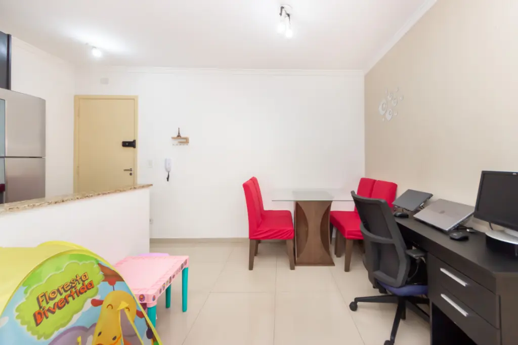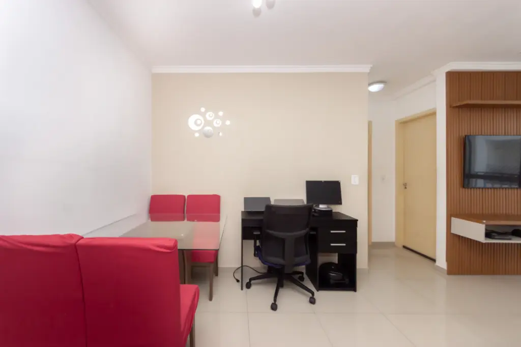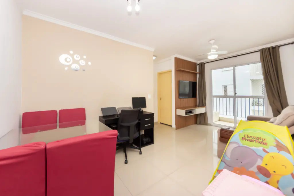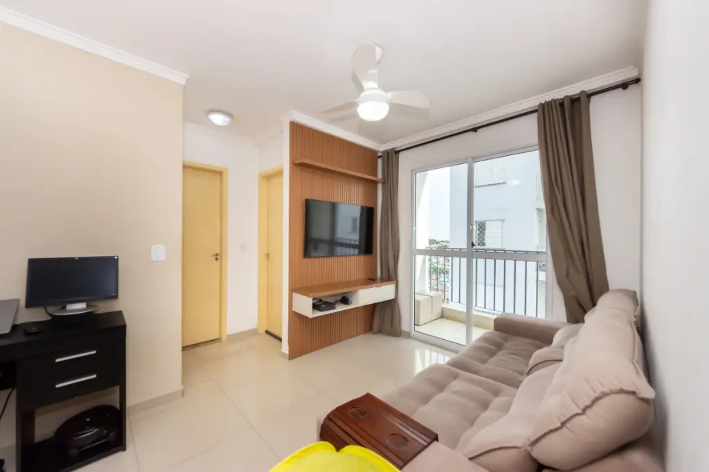 O imóvel conta com 2 dormitórios bem distribuídos, ideais para casal, família pequena ou até mesmo para quem deseja um quarto extra para home office. A sala é aconchegante, com ótima iluminação natural e acesso à sacada, proporcionando um ambiente agradável para relaxar ou receber visitas.
