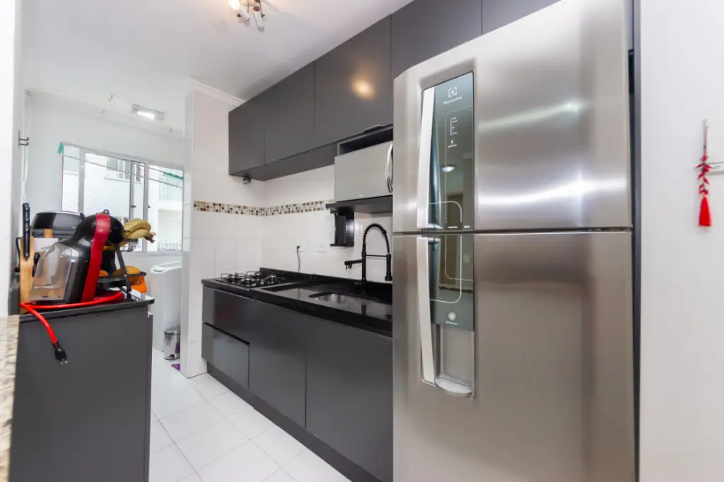 A cozinha americana integra perfeitamente os ambientes, trazendo mais amplitude e convivência ao espaço. Totalmente equipada com móveis planejados modernos e de excelente qualidade, oferece organização, praticidade e um acabamento que valoriza cada detalhe. O banheiro segue o mesmo padrão, com armários e estética contemporânea.