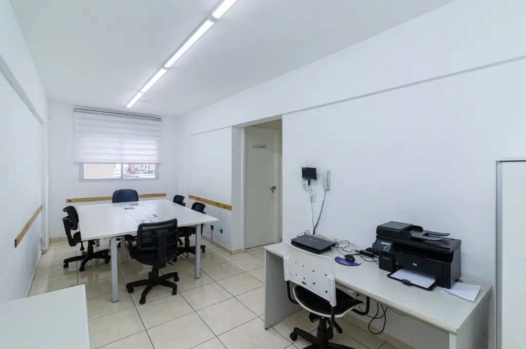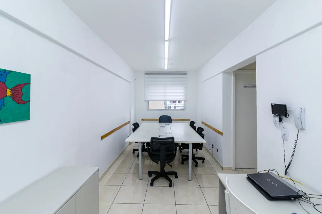 Espaço coworking com sala de reunião