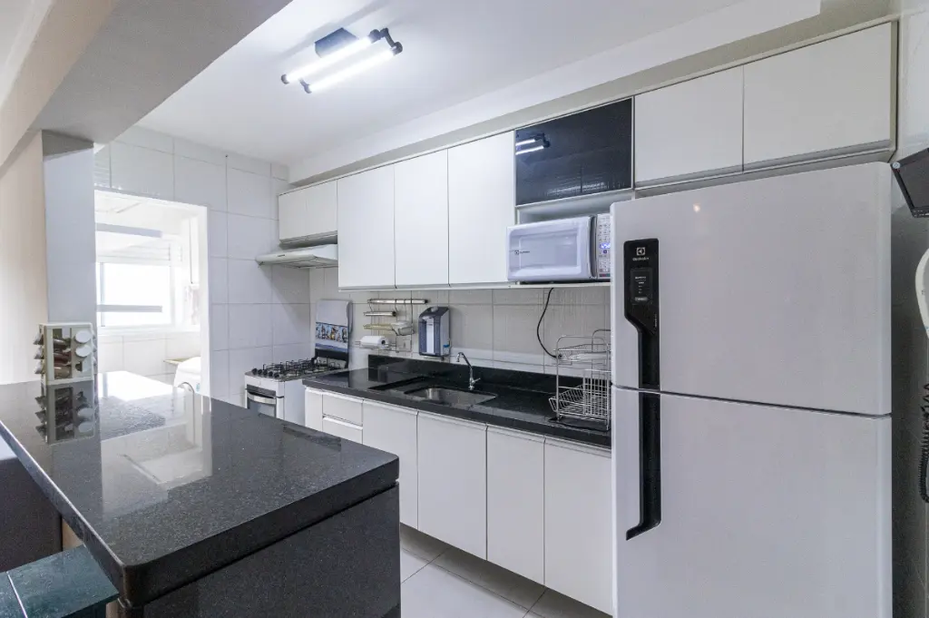 Cozinha americana equipada com armários planejados de qualidade