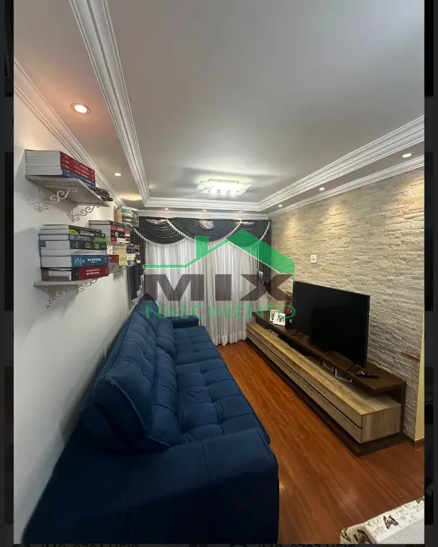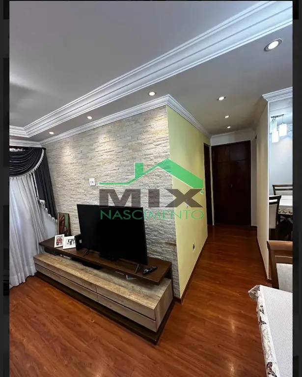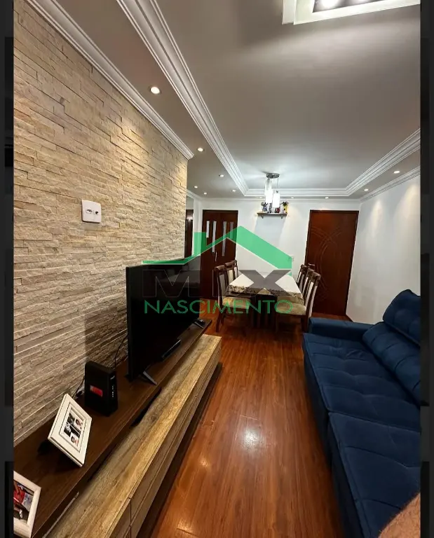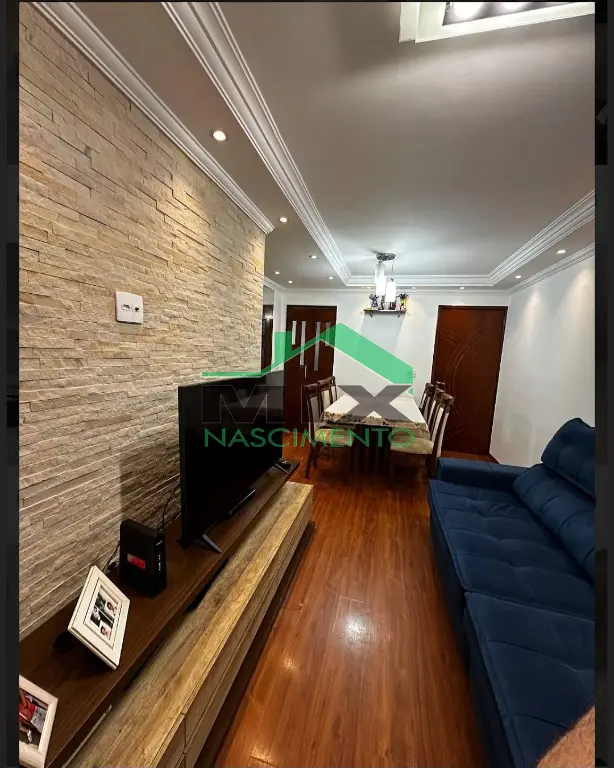 O apartamento conta com 2 dormitórios ?, ambos com guarda-roupas embutidos, além de piso laminado nos quartos e na sala, garantindo conforto térmico e elegância. A sala de estar ? é um verdadeiro destaque, com parede em canjiquinha, espelho decorativo amplo e prateleiras planejadas, além de teto rebaixado com sanca e iluminação em LED, criando um ambiente moderno e aconchegante.