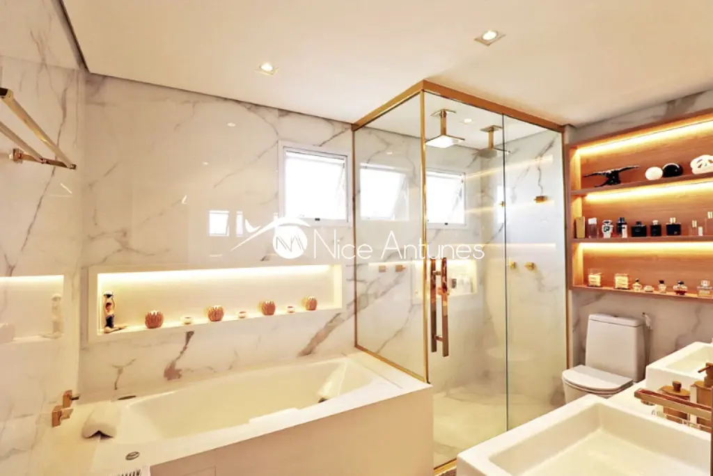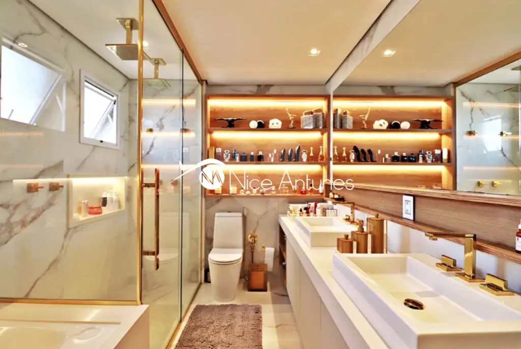 Banheiros com pisos e revestimentos em porcelanato.