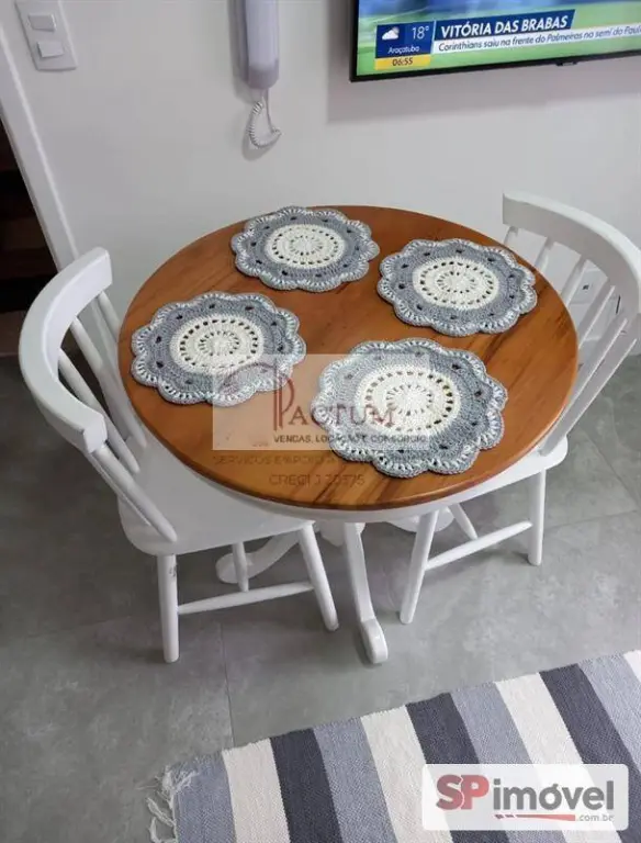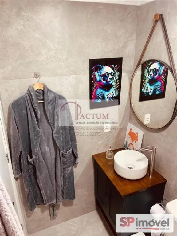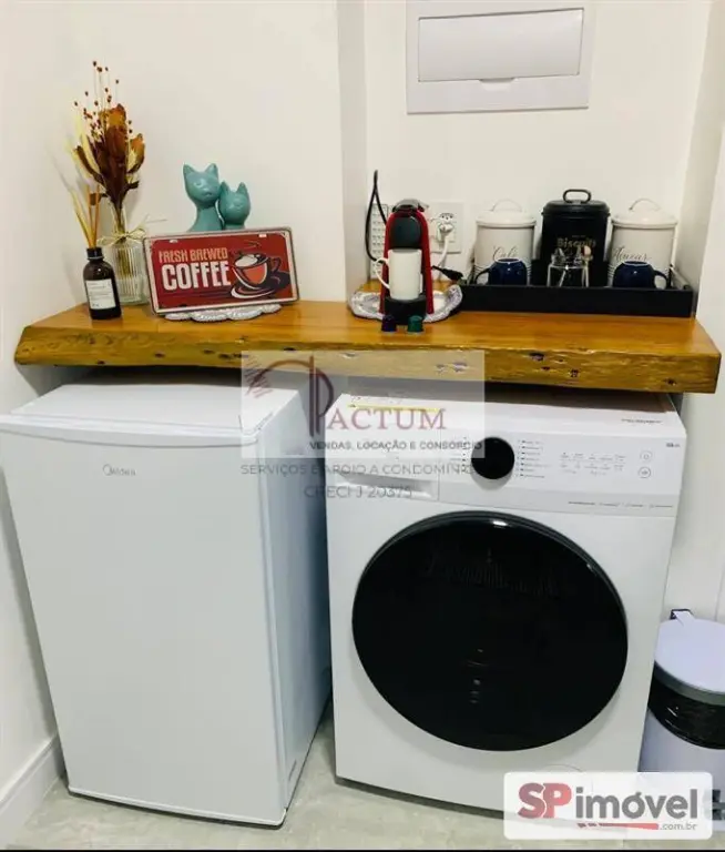 Possui móveis planejados na cozinha, dormitório com mobiliário, banheiro com box e revestimento em porcelanato, além de piso em porcelanato em todo o apartamento.