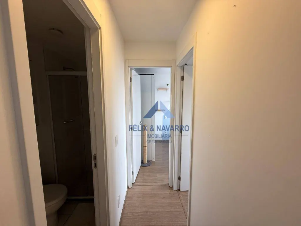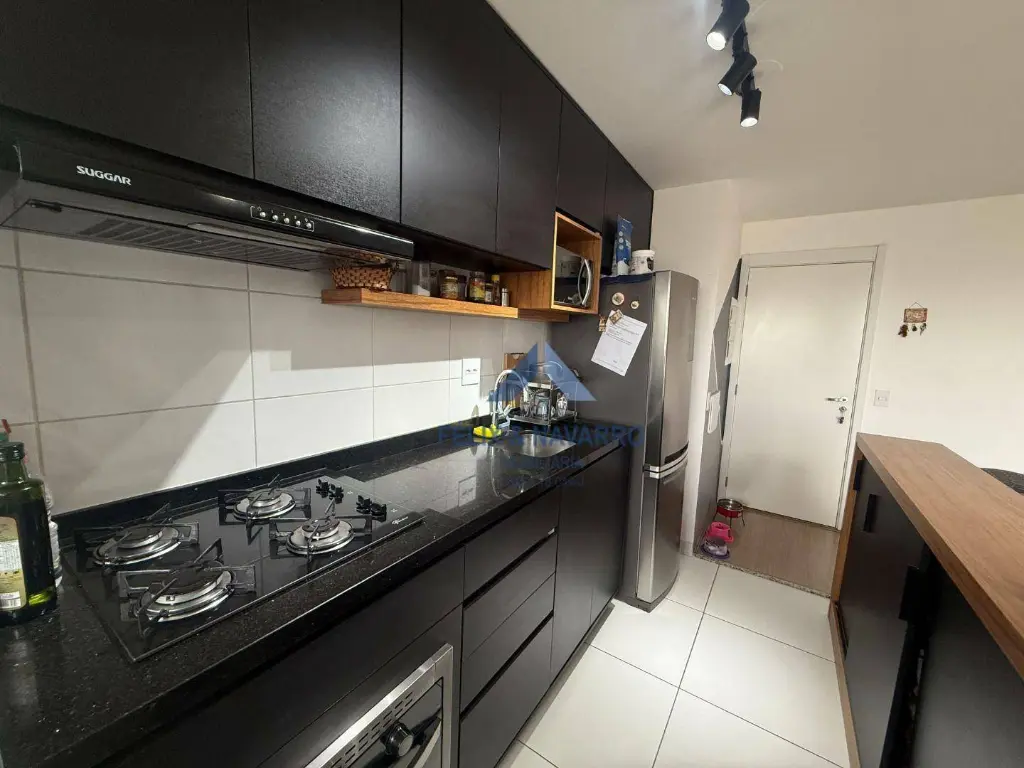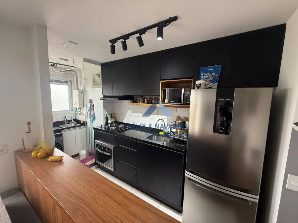 São 45 m², andar alto, sendo 2 dormitórios, sala 2 ambientes, sacada com vista livre, cozinha americana (com armários, cooktop, forno e depurador), lavanderia, banheiro social e 1 vaga de garagem coberta.