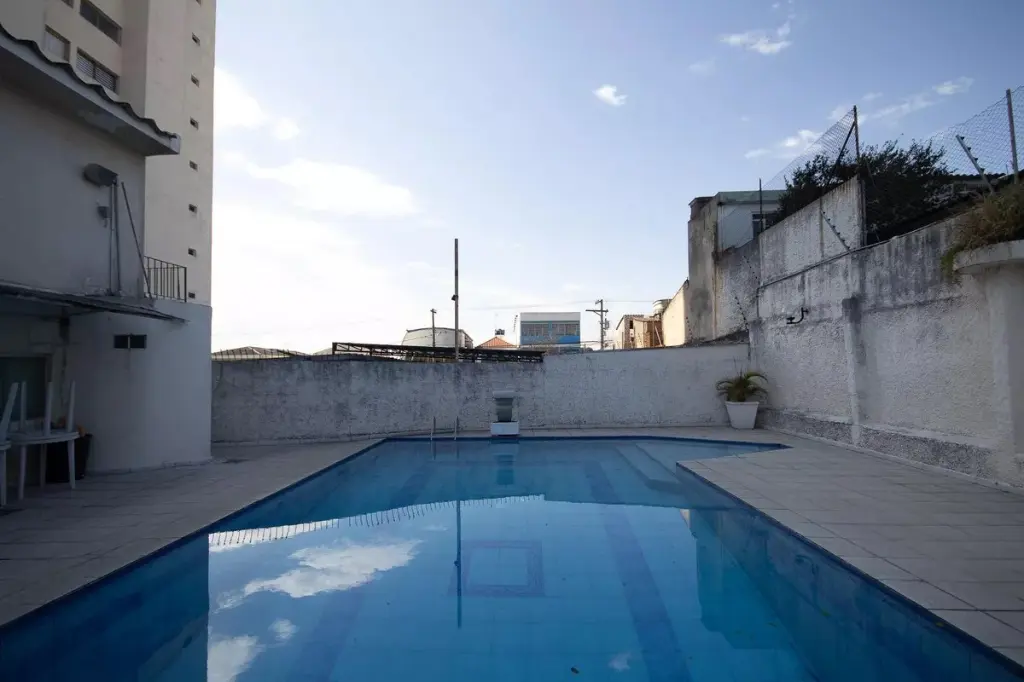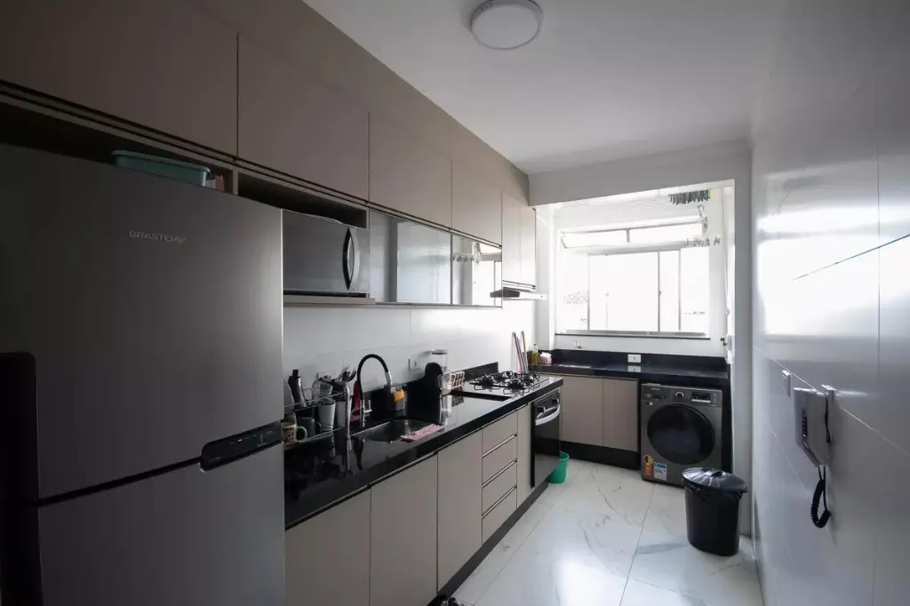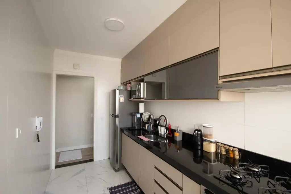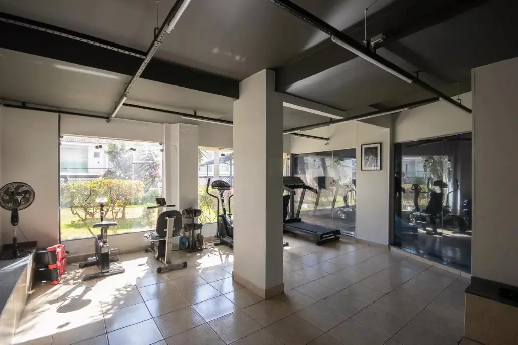 Condomínio com bicicletário, mercadinho, piscina, churrasqueira, quadra poliesportiva, salão de festas. salão de jogos, sala de ginastica.