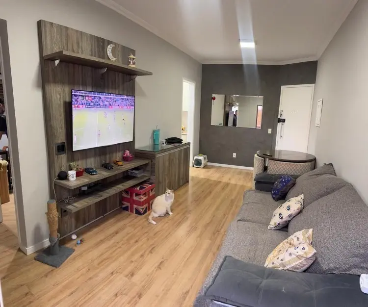 Apartamento em excelente estado, com armários nos 2 dormitórios, cozinha e lavanderia, sala 2 ambientes com varanda e 2 vagas de garagem fixas.