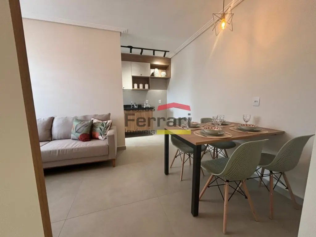 O apartamento conta com 2 dormitórios bem iluminados, sala integrada, cozinha funcional.
