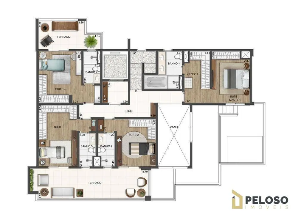 Duas opções de planta: 3 suítes (1 master) ou 4 dormitórios sendo 2 suítes (1 master).