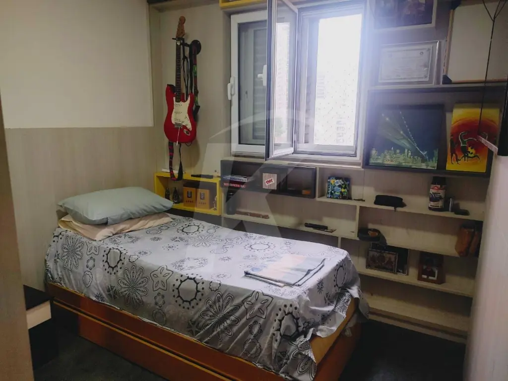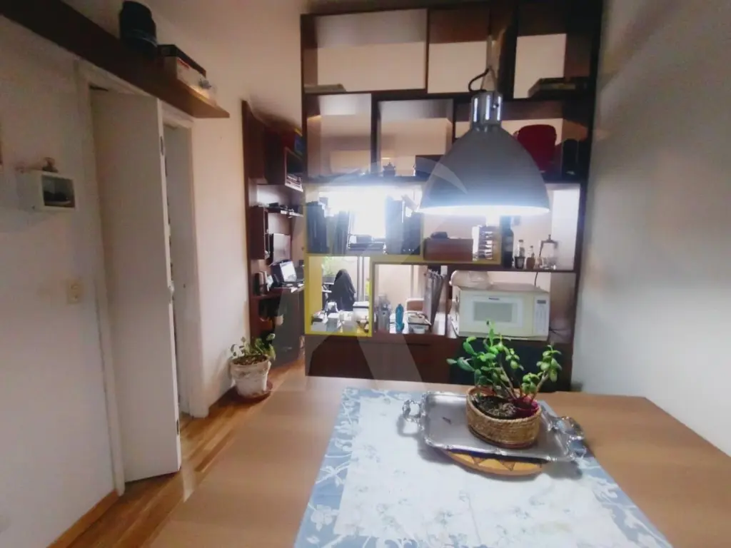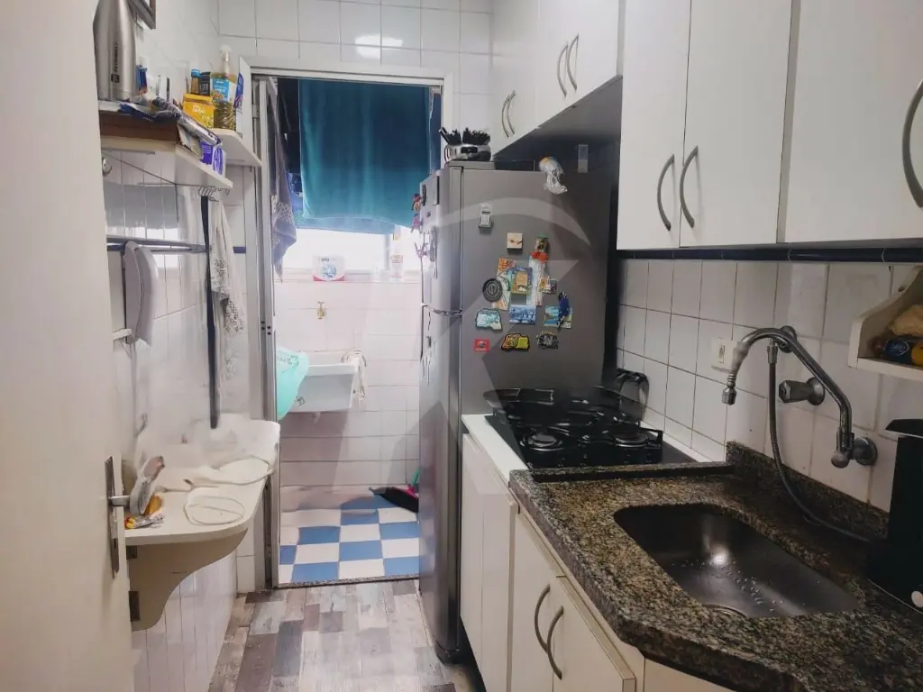 1 quarto, sala, 2 ambientes, sacada, cozinha planejada, banheiro com box de vidro e lavanderia.