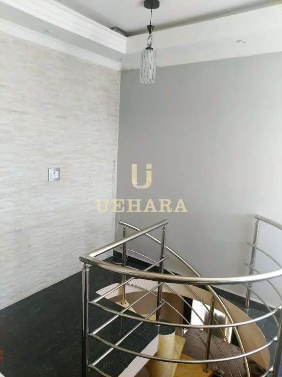 Corrimão da escada em alumínio e a pintura marmorizada, teto com gesso, Pia totalmente de mármore