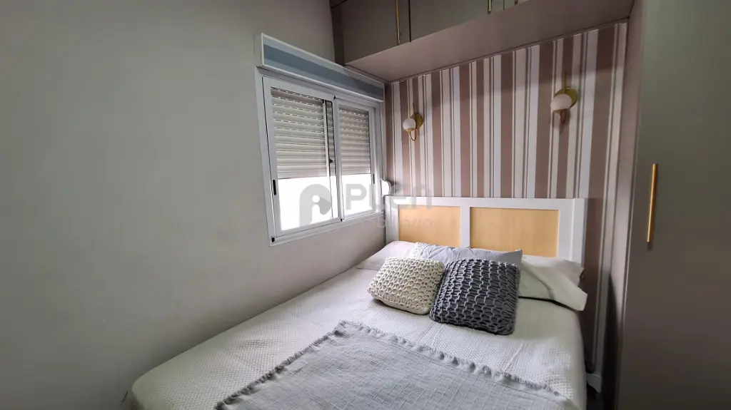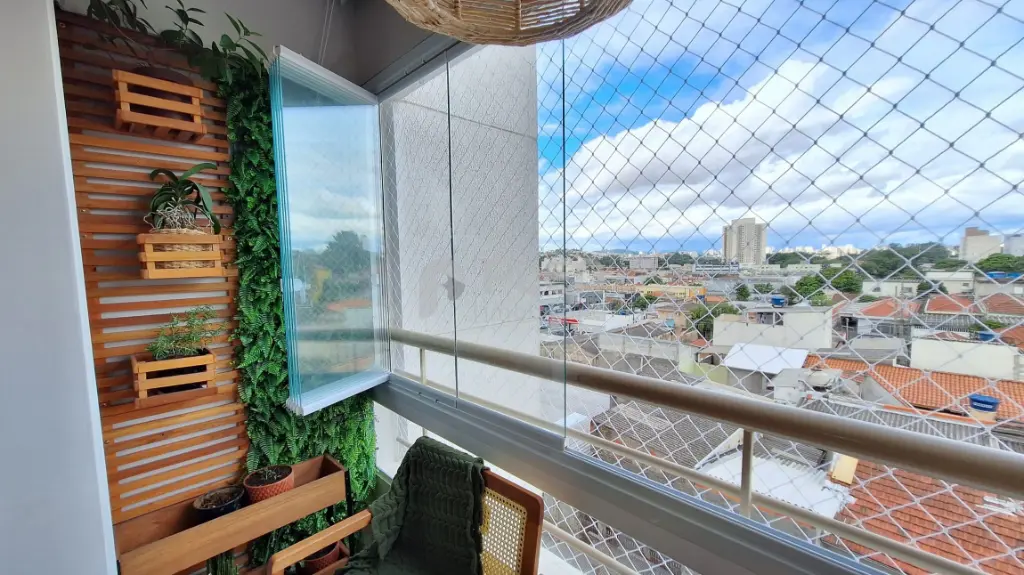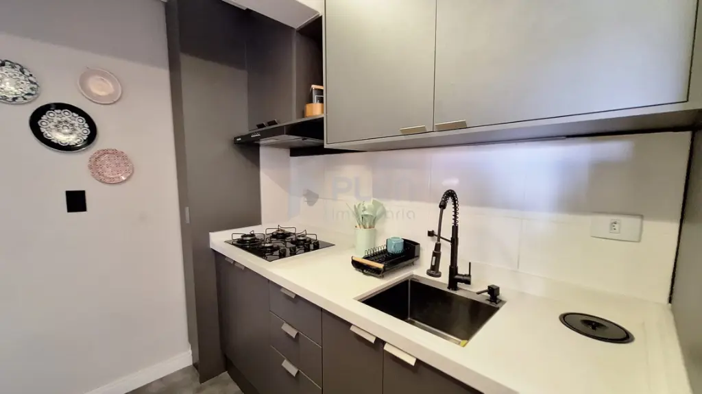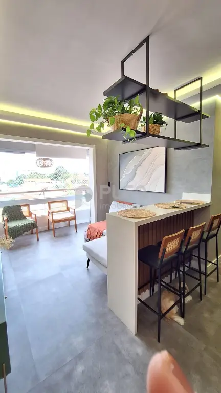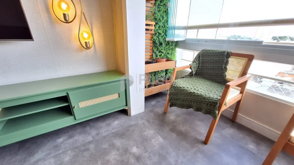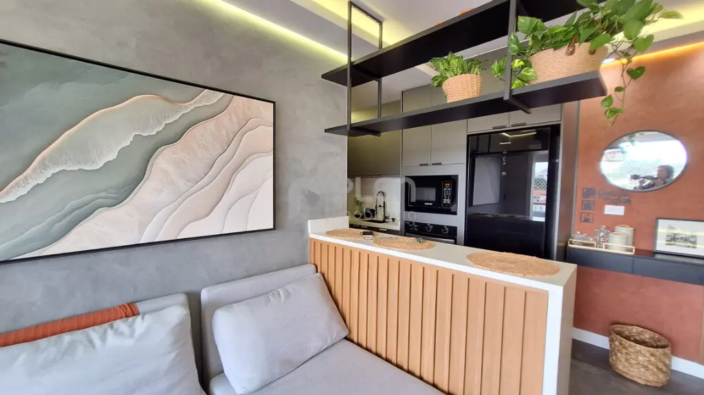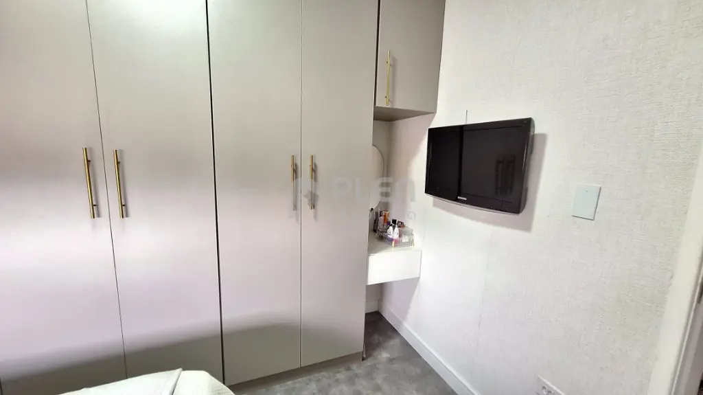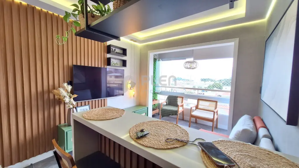 Destaques do imóvel: Piso vinílico, pedra da pia, balcão e da bancada do banheiro quartzo branco, pia da lavanderia granito preto, guarda roupa casal planejado, guarda solteiro planejado, cozinha planejada, sanca, na sala, cozinha e varanda, papel de parede nos quartos, painel ripado na sala, sala integrada com a varanda, com envidraçamento e tela de proteção, tudo novo, banheiro com box dourado até o teto .