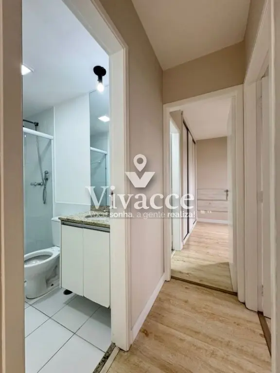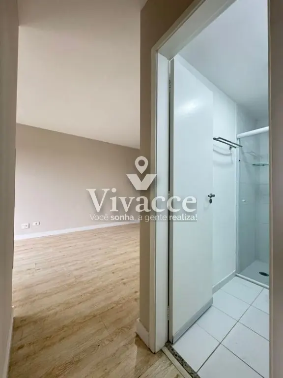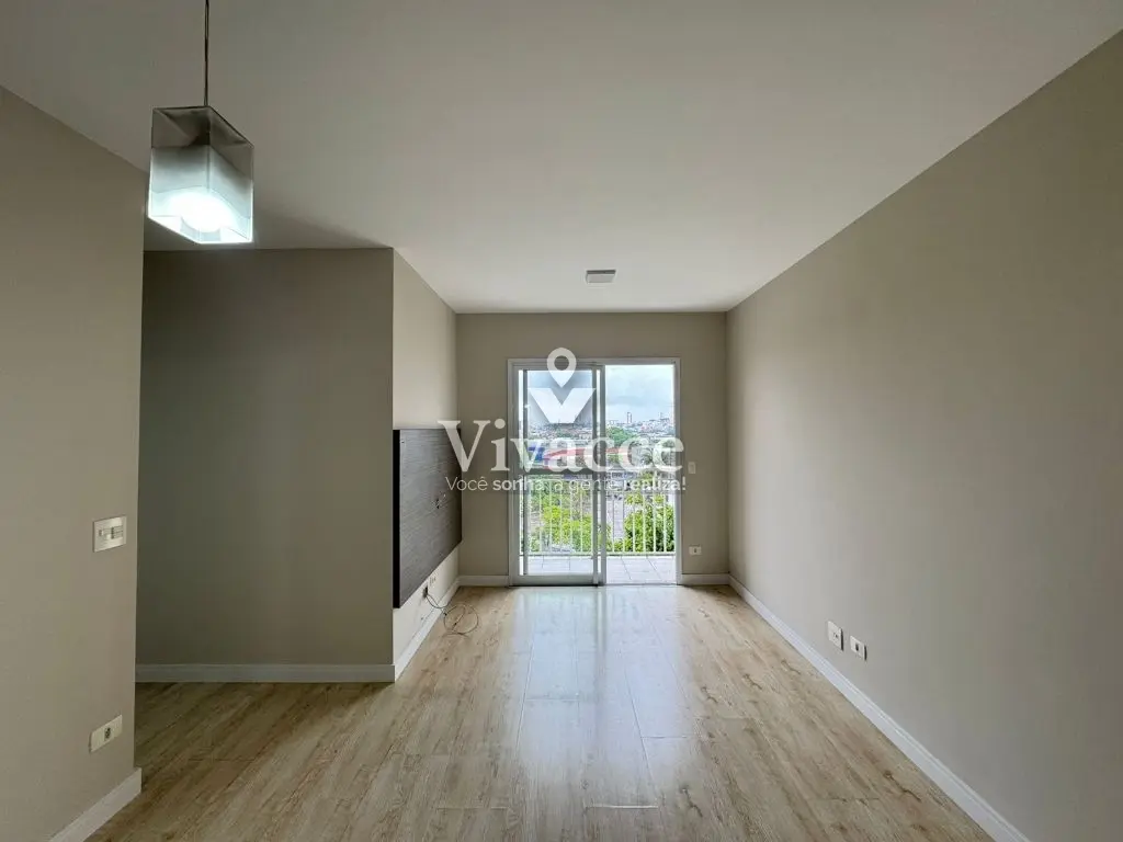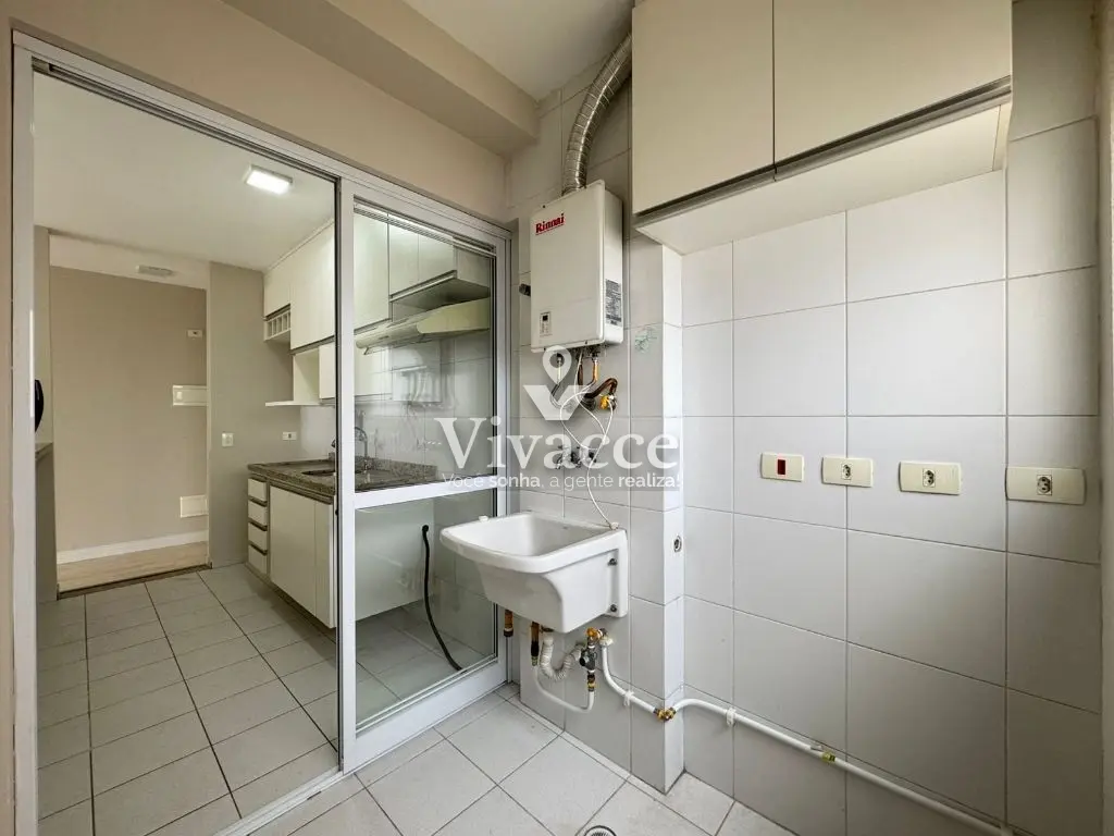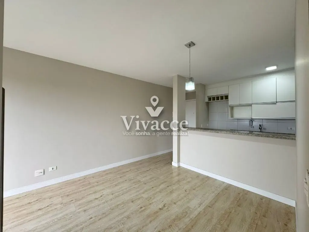 2 dormitórios, sendo 1 suíte, 1 banheiro social, sacada, sala de estar e jantar, cozinha, área de serviço, 1 vaga de garagem coberta presa ( vaga grande com espaço na lateral - sorteio a cada 2 anos ). Piso laminado na sala e dormitórios.