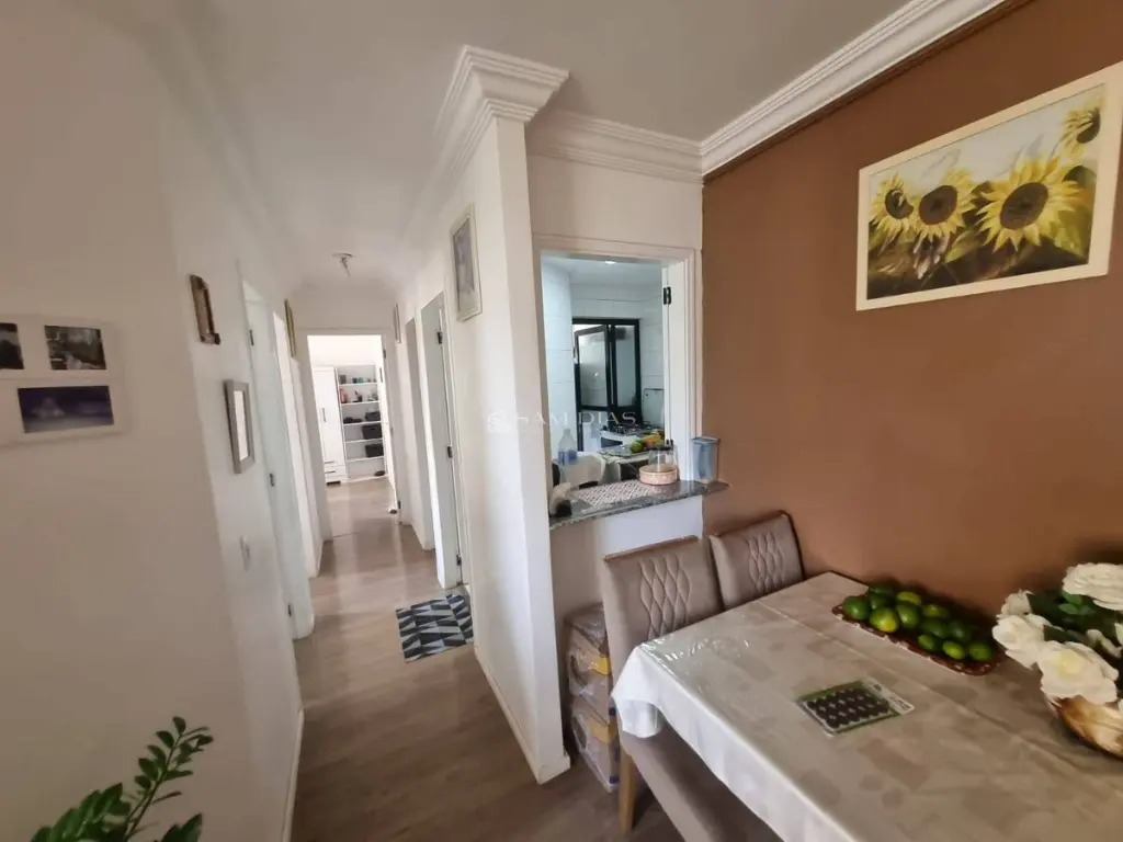 Com 89m² de área útil, o imóvel possui 3 dormitórios, sendo 1 suíte, sala bem distribuída, varanda, cozinha com armários, área de serviço e 2 banheiros. Conta ainda com 1 vaga de garagem.