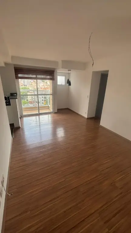 Possui 1 dormitório, 1 banheiro, sala com varanda, cozinha (com armários), área de serviço e 1 vaga de garagem no subsolo.