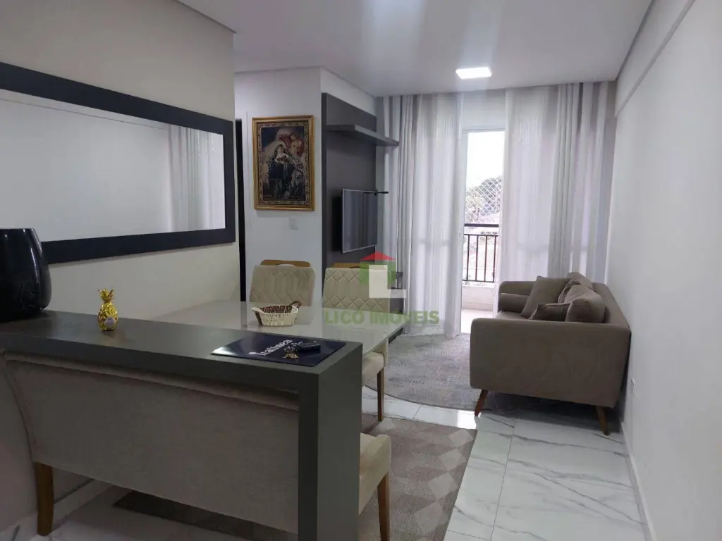 O imóvel mobiliado dispõe de 02 dormitórios sendo 01 suíte, sala, cozinha, 01 banheiro e sacada.