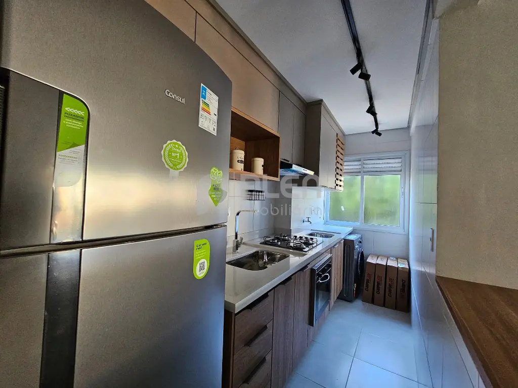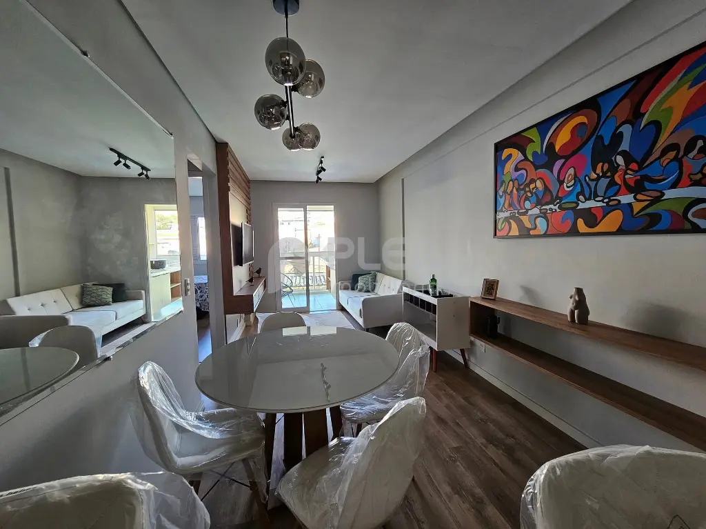 Sala mobiliada já integrada á varanda, cozinha com mobília, lava e seca, cooktop, bancada em granito, já com área de serviço integrada com lava e seca.