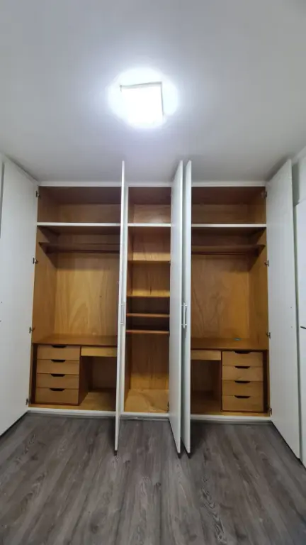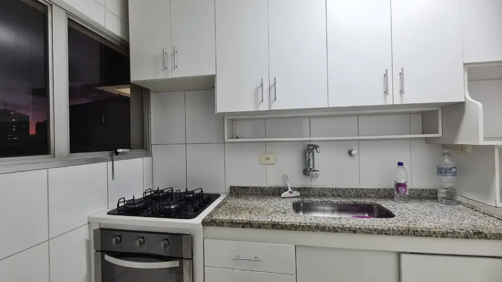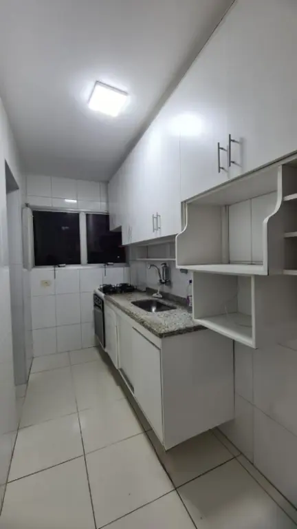 O imóvel conta com 2 dormitórios com armários embutidos, sala ampla para dois ambientes com sacada, proporcionando boa iluminação natural e conforto. A cozinha possui armários planejados e está integrada a uma ótima área de serviço, funcional e bem ventilada.