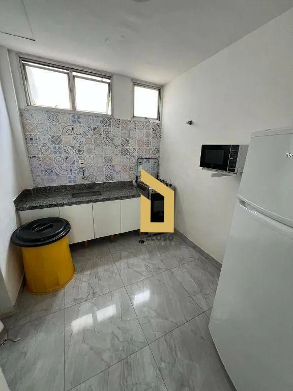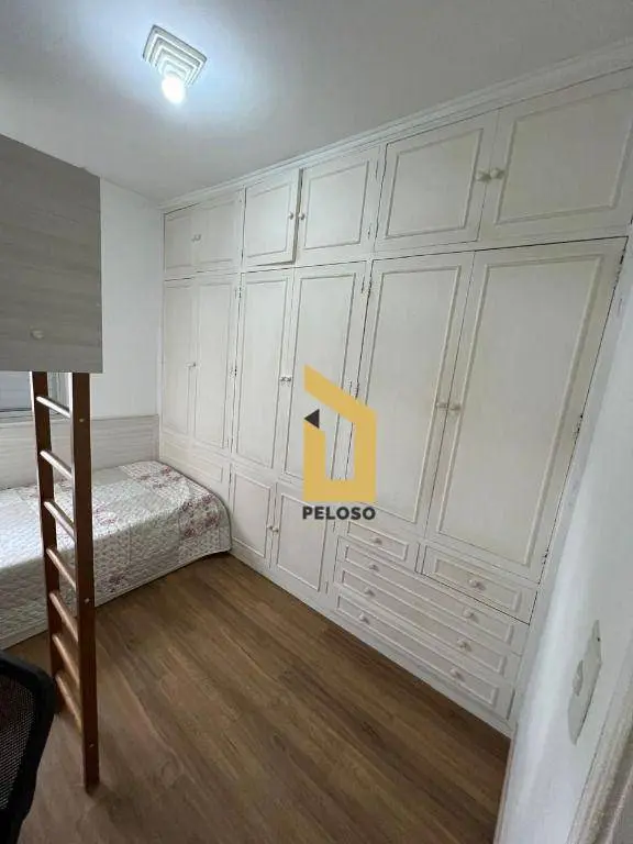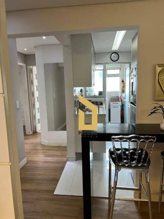 2 dormitórios com armários, 1 banheiro, sala ampla com sacada, cozinha planejada, área de serviço e dependência de funcionários.