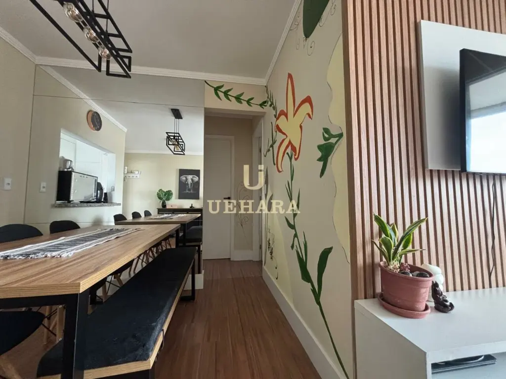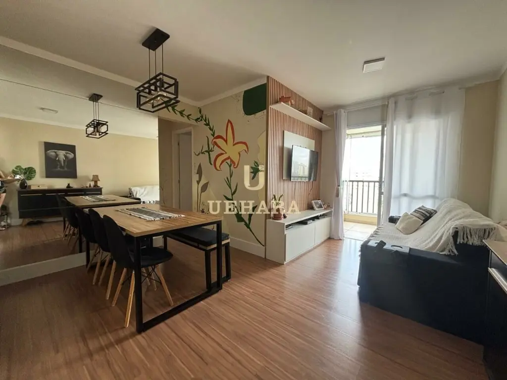 Apartamento de 59m², em andar alto com sacada e vista livre, ótima iluminação natural, excelente ventilação, com 02 dormitórios, sala, cozinha, área de serviço e está semi mobiliado, e 02 vagas de garagem.