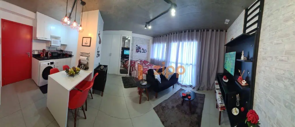 Studio de 36 m², totalmente mobiliado e completo, localizado na Rua Alfredo Pujol, 8º andar.