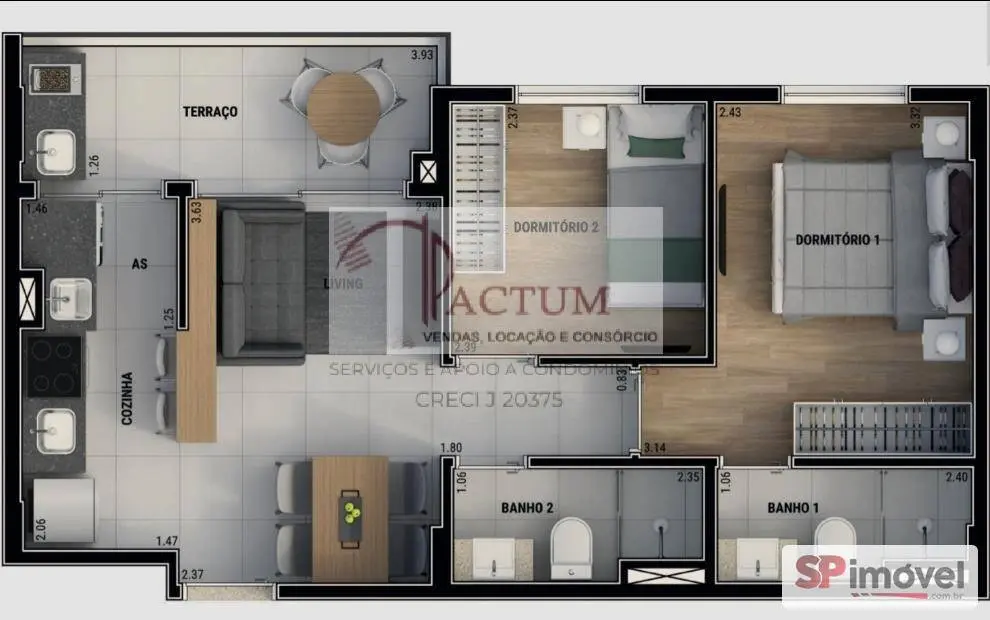 Com 45m² muito bem distribuídos, o imóvel conta com: