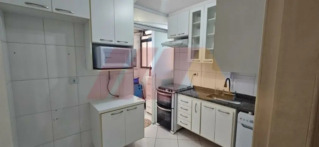 A sala é ampla, comportando confortavelmente dois ambientes, e se integra a uma charmosa sacada já envidraçada e com persianas, perfeita para momentos de relaxamento. O imóvel dispõe ainda de banheiro social, cozinha funcional, área de serviço arejada e 1 vaga de garagem.