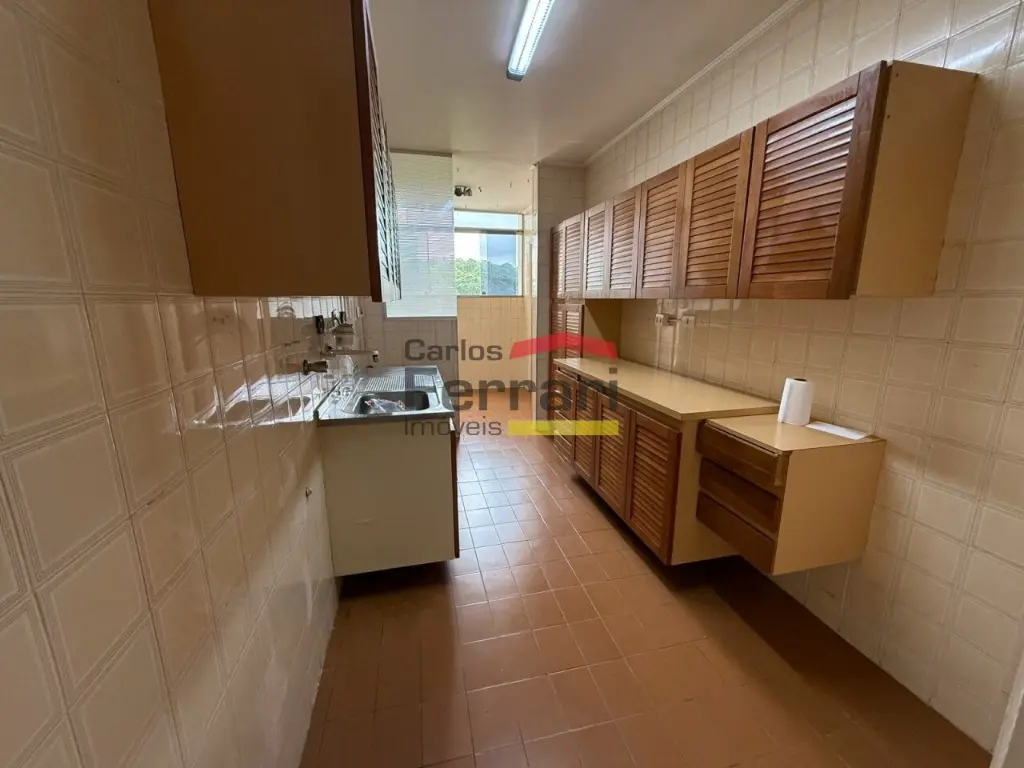 A planta original de 3 dormitórios foi modificada para ampliar a suíte, oferecendo mais conforto e espaço interno. Atualmente, o apartamento conta com 2 dormitórios (1 suíte ampliada), 3 banheiros, sala para dois ambientes, varanda, cozinha ampla com excelente iluminação natural e área de serviço com dependência de empregados, característica cada vez mais valorizada em imóveis residenciais. Possui ainda 1 vaga de garagem.