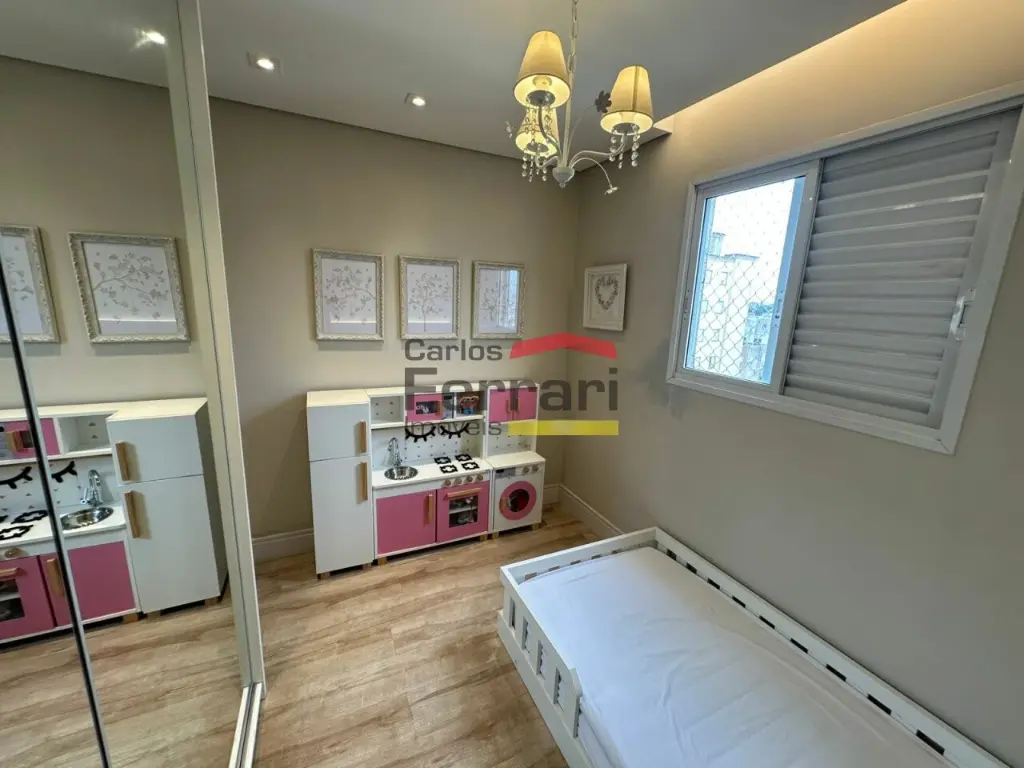 A planta conta com sala para dois ambientes integrada à varanda, cozinha planejada com armários, lavanderia independente e circulação funcional. São 3 dormitórios com armários, incluindo 1 suíte, além de banheiros que atendem às áreas social e íntima. O imóvel à venda em Vila Maria possui 2 vagas de garagem e ambientes já mobiliados, facilitando a mudança.