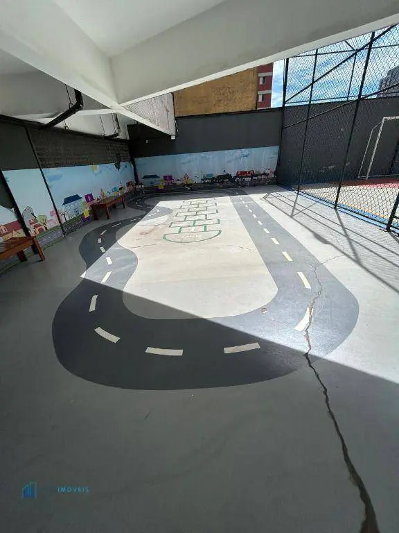 Lazer com piscina, quadra poliesportiva, academia, playground e salão de festas com churrasqueira.