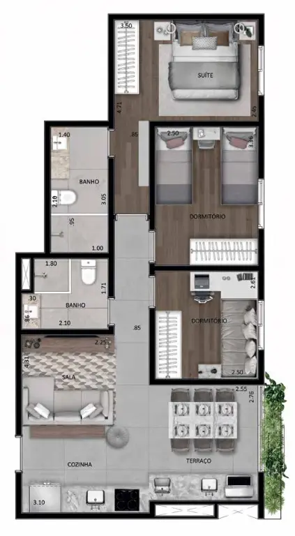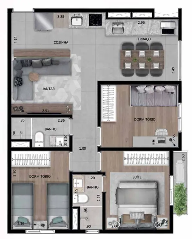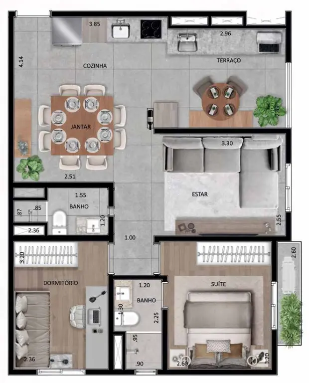 Com variadas plantas de 62/63/66 m², cada detalhe do empreendimento carrega consigo a força da história e elegância da tradição do espírito desbravador dos iberos e sua herança cultural.