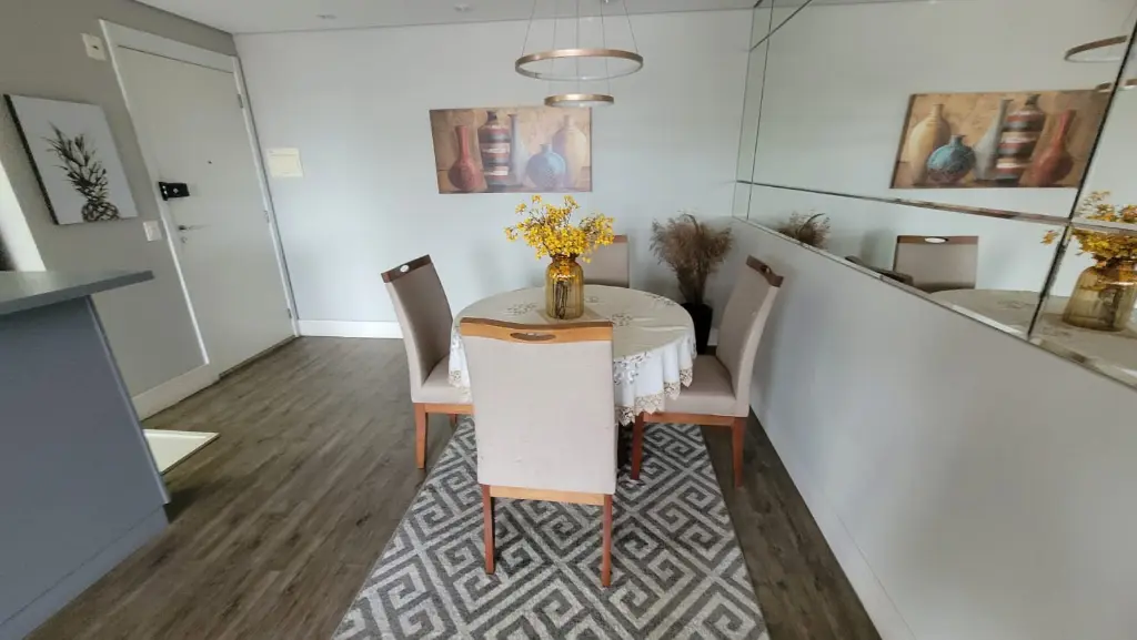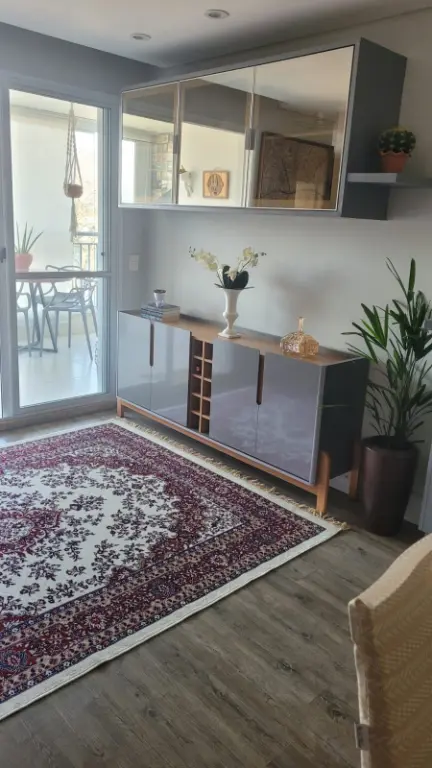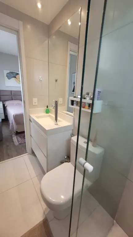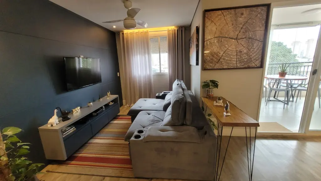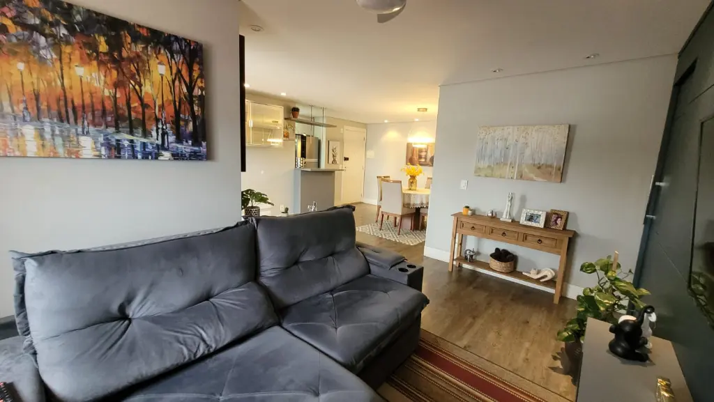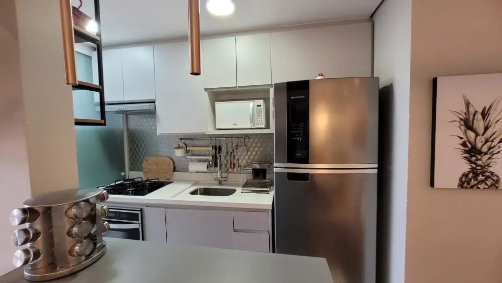 Imóvel com: 80m², 2 quartos (1 suíte) com móveis planejados, sala ampliada (com opção para 3º quarto), varanda gourmet envidraçada com churrasqueira a carvão e 2 banheiros.