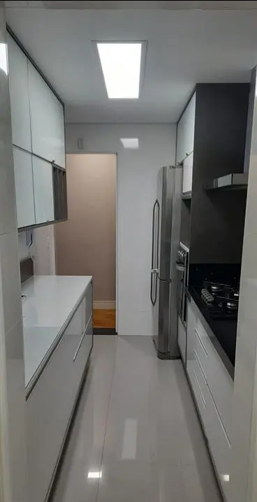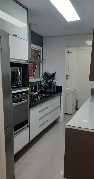 Apartamento em andar alto, com hall de entrada, living para 2 ambientes com varanda estendida, ambiente claro e arejado, 3 dormitórios com armários, sendo 1 suíte, cozinha com armários, e área de serviço, com aquecedor à gás, água quente na torneira da cozinha, 1 vaga fixa e livre.