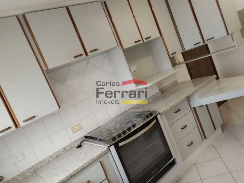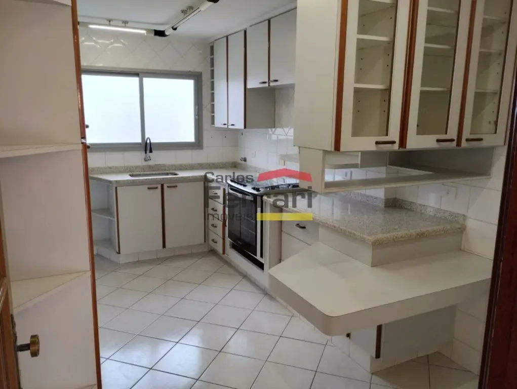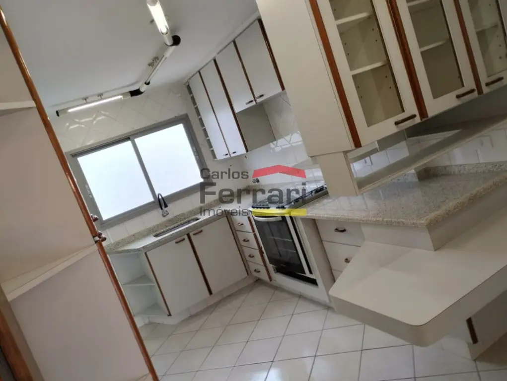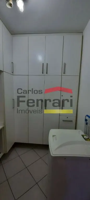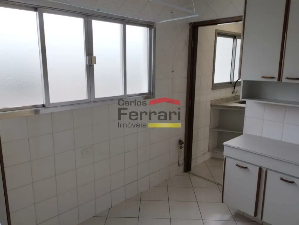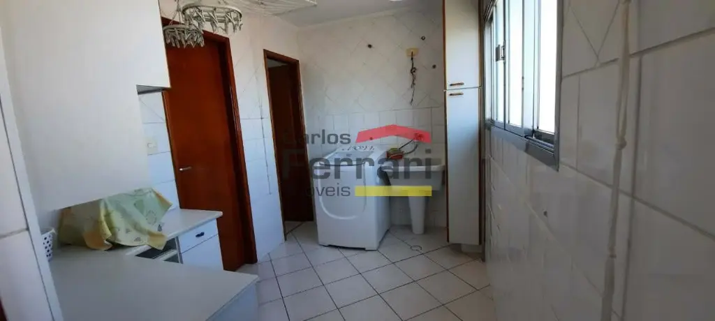 Cozinha espaçosa com armários embutidos e azulejo até o teto para facilitar na limpeza. Lavanderia espaçosa e azulejada, quarto e banheiro de serviço, sendo possível conversão para o interior do apartamento.