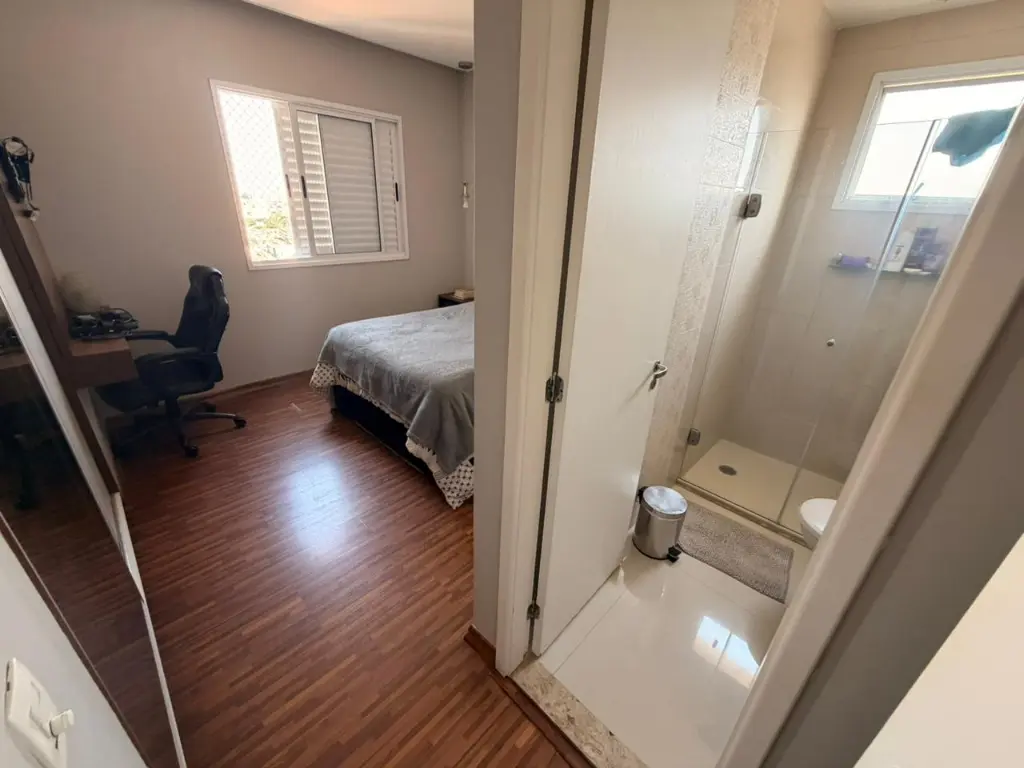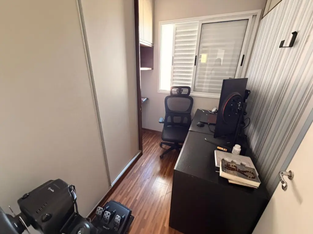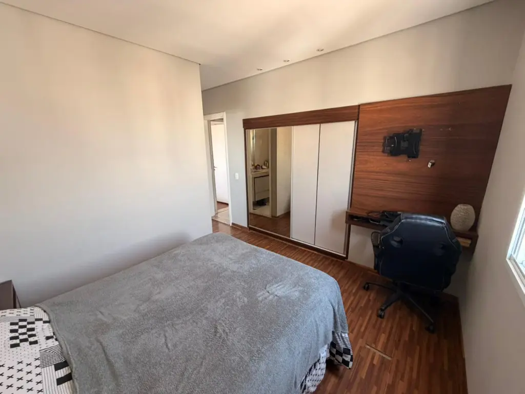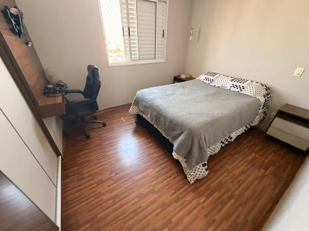 O imóvel dispõe de 3 dormitórios, sendo 1 suíte, 2 banheiros, 2 vagas de garagem, e uma charmosa varanda gourmet com fechamento em vidro ideal para momentos de lazer com a família e amigos.