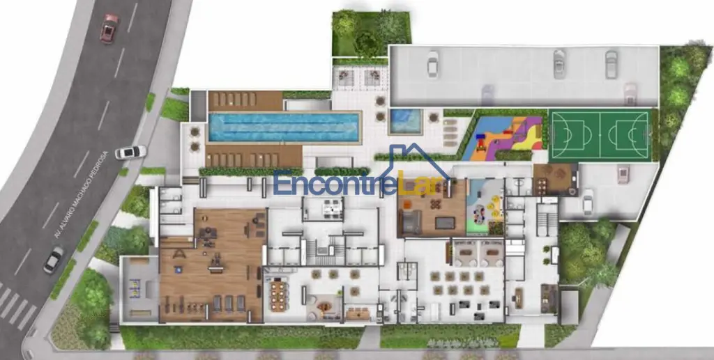 Academia, piscina, quadra esportiva, salão de festas, churrasqueira, playground, sauna, salão de jogos e brinquedoteca.