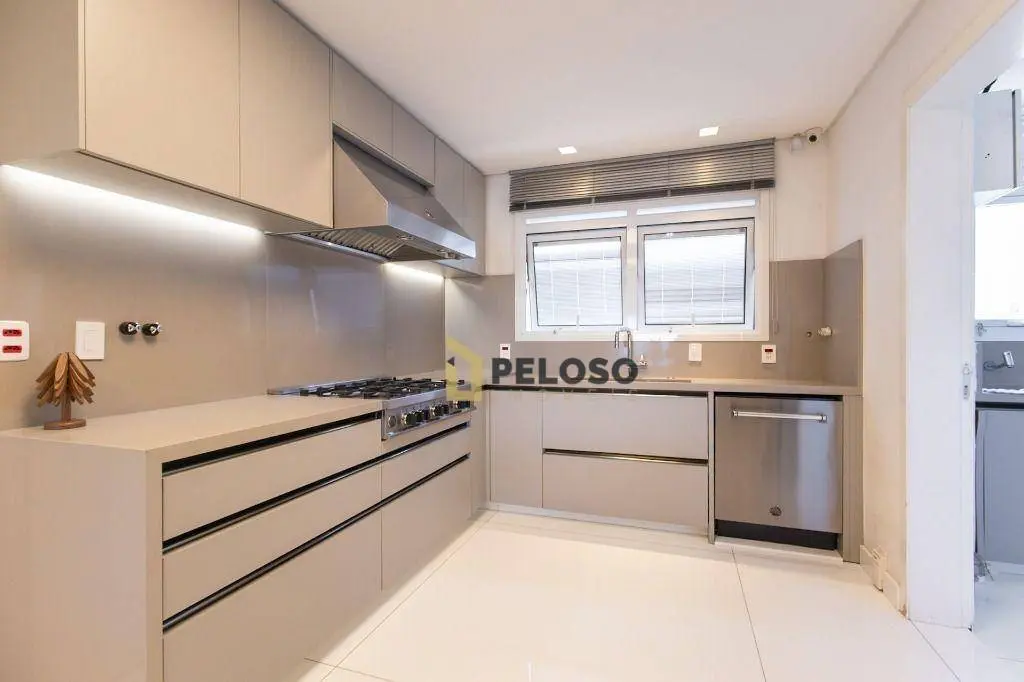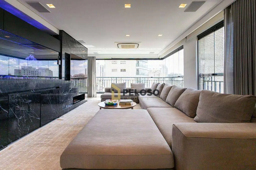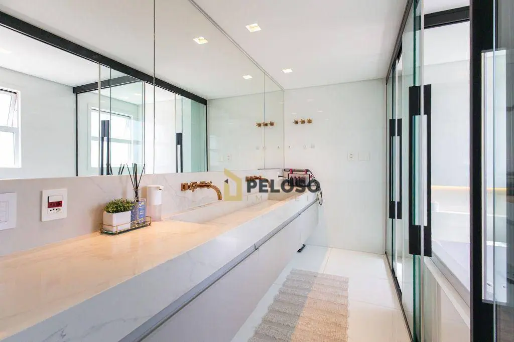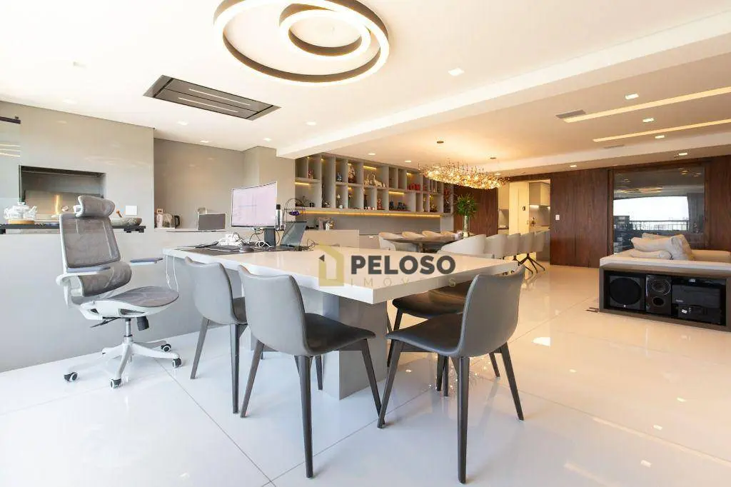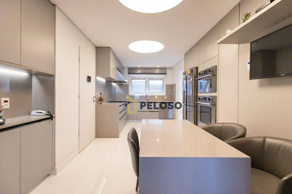4 suítes sendo 1 suíte master com amplo closet e terraço, amplo living para 3 ambientes, terraço gourmet com churrasqueira, lavabo, copa, cozinha, área de serviço e quarto e banheiro de funcionária.