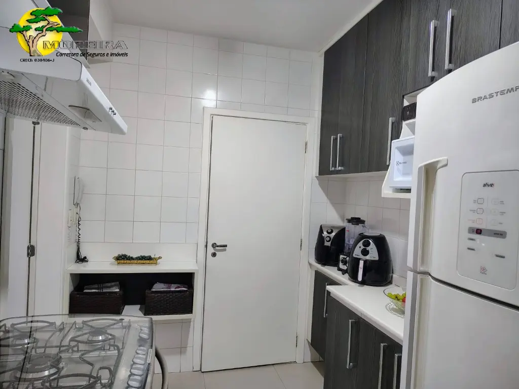 APARTAMENTO COM 104M, 3 DORMITÓRIOS (SENDO UMA SUÍTE), 1 BANHEIRO, LAVABO, ESCRITÓRIO, SALA PARA 2 AMBIENTES COM SACADA, COZINHA, LAVANDERIA E DISPENSA, AR CONDICIONADO NA SALA E NOS 3 DORMITÓRIOS, 2 VAGAS DE GARAGEM.