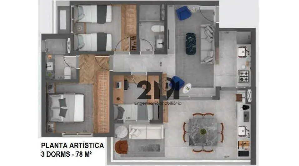 Condomínio com: Piscina com Deck e Solárium adulta e infantil, Salão Gourmet com Churrasqueira, Salão de Festas, Playground, Salão de Jogos integrado a Brinquedoteca e espaço Fitness.